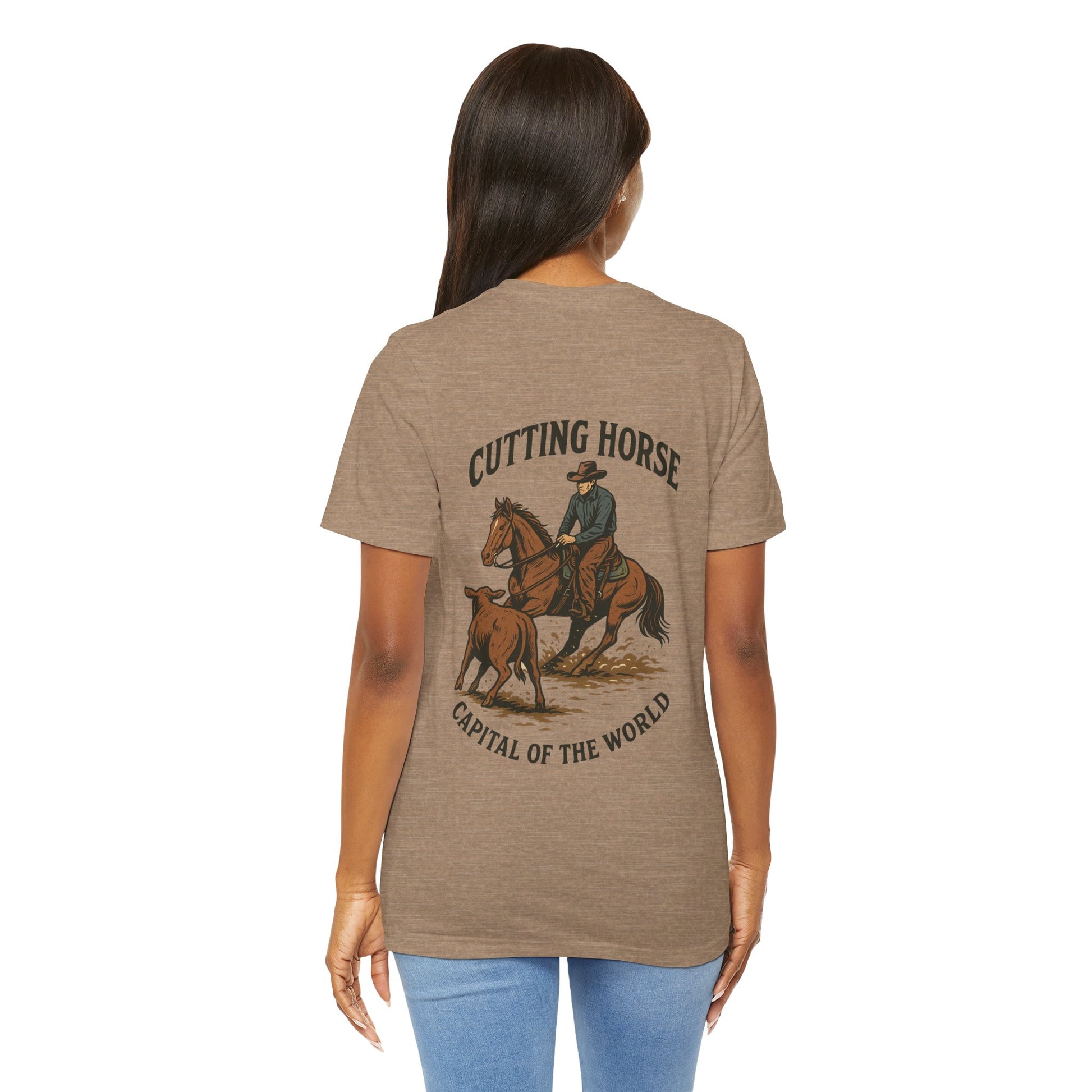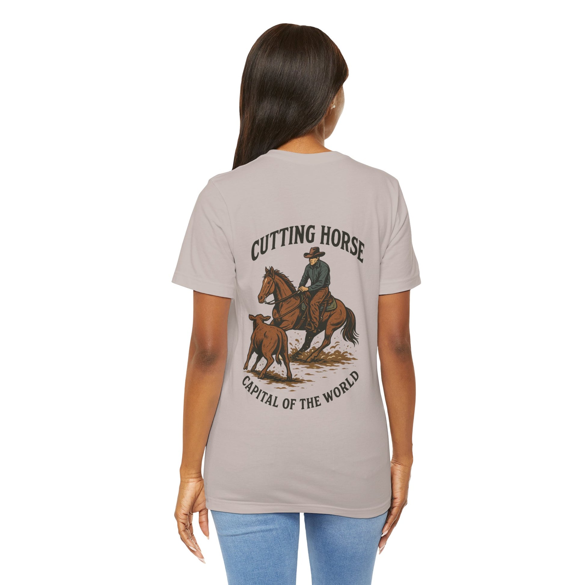 Elevate your wardrobe with this stylish Unisex Jersey Short Sleeve Tee. Crafted from 100% Airlume combed and ring-spun cotton, this tee offers a lightweight, breathable feel that's perfect for any occasion. The classic crew neckline and retail fit make it ideal for both casual outings and semi-formal gatherings. Whether you're lounging at home or out with friends, this versatile tee effortlessly blends comfort and style. It's suitable for adults and can be a thoughtful gift for birthdays, holidays, or any celebration. Perfect for outdoor enthusiasts, horse lovers, and anyone wanting to make a statement in their everyday attire.